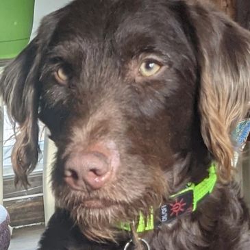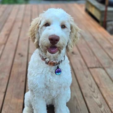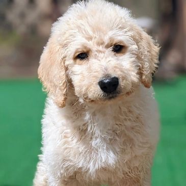 Sage is the daughter of Sienna & Mojo which makes her a F1 Labradoodle. She's a big girl weighing 80 pounds. She loves swimming, playing ball & hanging with the rest of the pack here at Caldron Falls Doodles and Poodles.