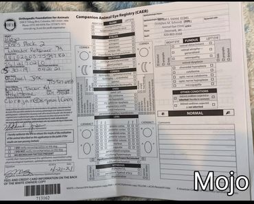 “He's just a happy go lucky kind of guy. Everyone that meets him just loves his personality. He is such a silly dog and loves to talk to you. He's a great companion and produces beautiful pups. Mojo is retired.