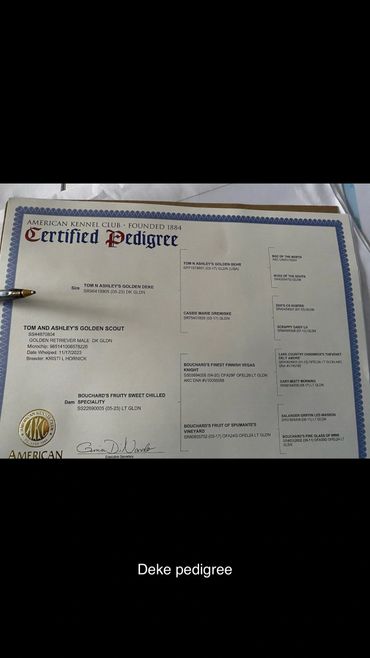 Deke’s owner has owned 3 generations of Golden Retrievers. 1st their was Behr that lived to the ripe old age of 15 with no health issues. He was Deke's father.