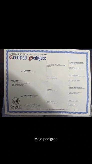 She loves swimming, playing ball, and hanging with the pack. Bailey throws yellow, black & chocolate pups. She is the daughter of Mojo & Mazzie. Mojo and Mazzie are OFA'D and DNA'D and Eye Certificated.